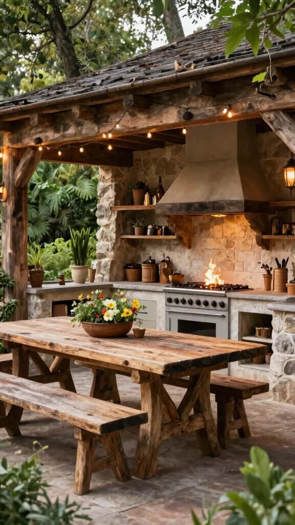 A well-planned rustic outdoor kitchen with reclaimed wood and stone can boost gathering time by 30% because guests naturally cluster around the fire pit and dining table. With smart outdoor kitchen plans layout, you cook and host seamlessly.