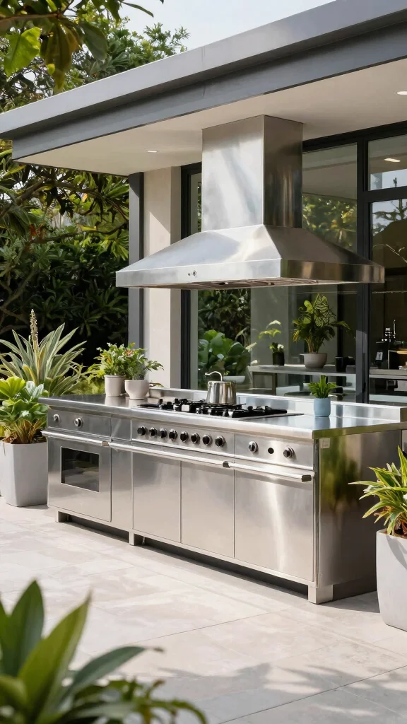 Choose compact, weather‑resistant appliances and durable surfaces to simplify maintenance while keeping a polished look.