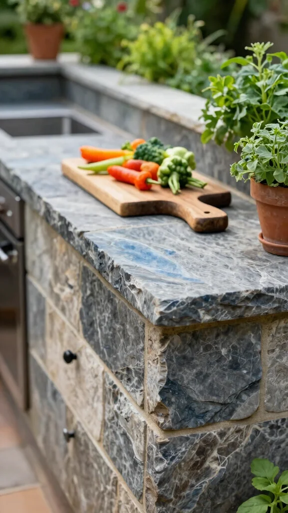 Dreaming of an outdoor kitchen that feels like a natural retreat? Rustic stone countertops are your answer. They not only boast durability but also add a unique aesthetic that enhances any outdoor cooking space. Imagine the textures and colors of slate, granite, or bluestone, each piece telling its own story. These stones don’t just look stunning; they age beautifully, developing a character that draws you in and makes outdoor cooking a joy.