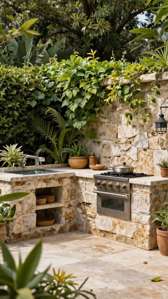 Want to create a seamless connection between your outdoor kitchen and garden? Integrating nature with your stone designs can transform your space. Using plants, trellises, and water features alongside stone elements creates a cohesive look that feels organic. Choose stones that match the surrounding landscape or incorporate natural features like boulders or logs to enhance the rustic feel. This mix of stone and nature creates an inviting area perfect for cooking and relaxation.