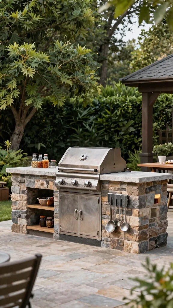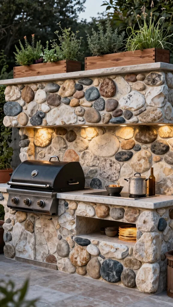 Want to guide guests through your outdoor space? River rock pathways offer a charming solution. These natural stones create a rustic feel that beautifully complements your landscaping. You can design winding paths that lead to your cooking area, seamlessly connecting it with the rest of your garden. Plus, river rocks allow for effective drainage, reducing puddles after rain.