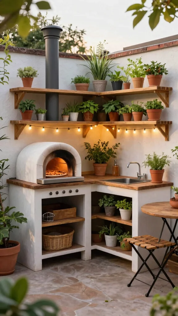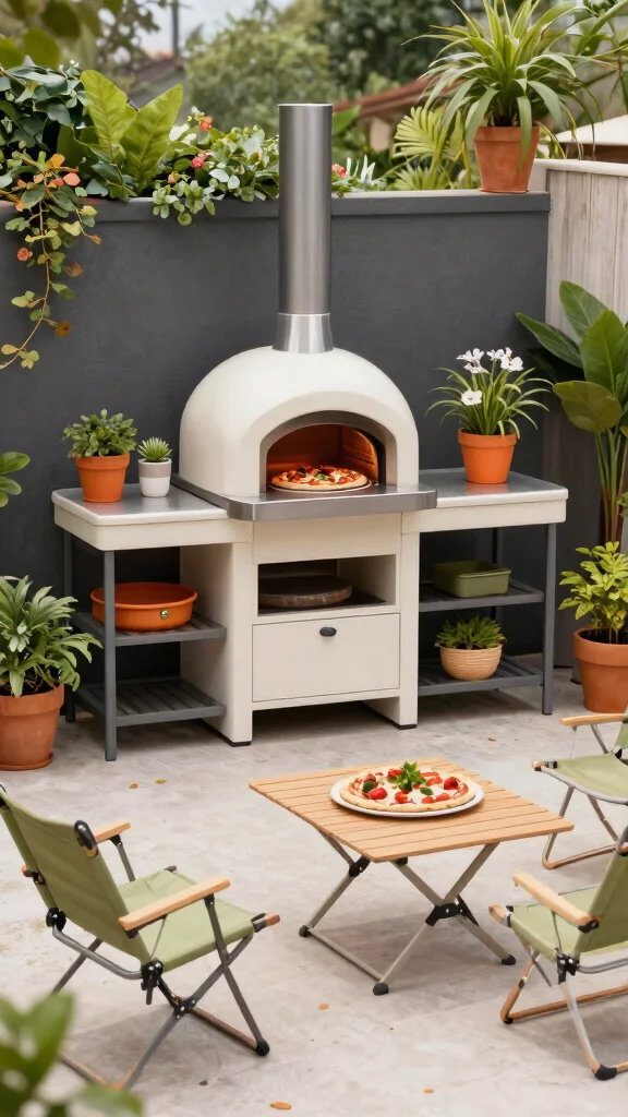 Finish with compact seating, heat‑resistant materials like stone or concrete, and simple lighting so nights feel inviting rather than cramped. Add a small herb bed or pot shelf to keep fresh toppings within reach, and consider a retractable shade to preserve comfort in all weather.