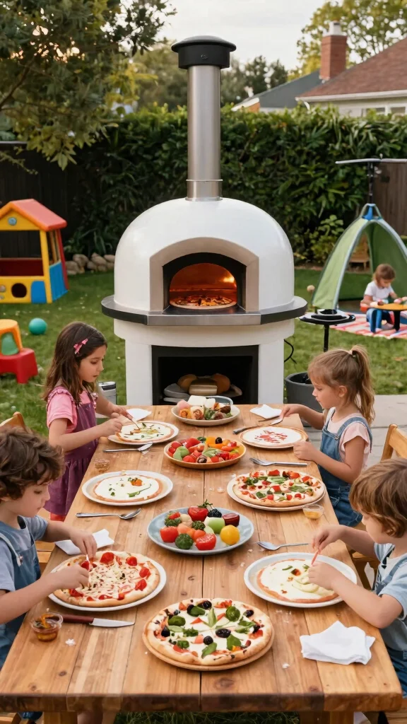 Creating a family-friendly outdoor kitchen means designing a welcoming space for everyone. Imagine a pizza oven as the centerpiece, surrounded by ample seating and kid-friendly dining options. This setup encourages family bonding over delicious homemade pizzas while prioritizing safety and comfort.