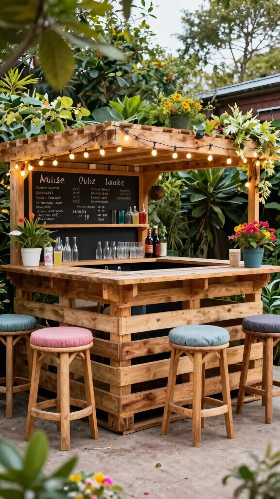 Utilizing pallets allows you to create designated sections for beverages, garnishes, and glassware, transforming your outdoor area into a fully functioning bar. Enhance comfort by adding repurposed pallet stools or cushions for your guests to relax on while enjoying their drinks.
