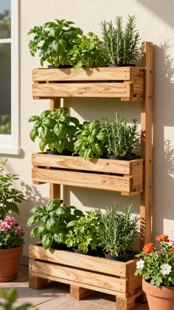 Want to spice up your outdoor kitchen? A vertical herb garden made from pallets is a fantastic way to incorporate fresh flavors into your cooking while saving space. This clever setup adds a vibrant touch to your kitchen area and is incredibly easy to maintain.
