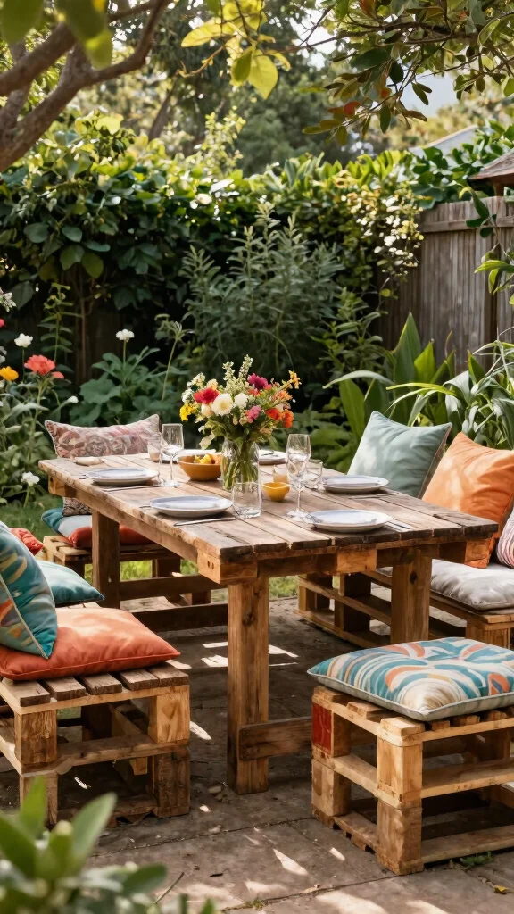 For seating, create simple pallet benches with outdoor cushions or convert a second pallet into a bar-height counter. Plant herb planters from cut sections of pallets to keep fresh herbs handy for outdoor cooking setups. Finish with weatherproof paint or sealant to extend life and keep a cohesive look with your garden.