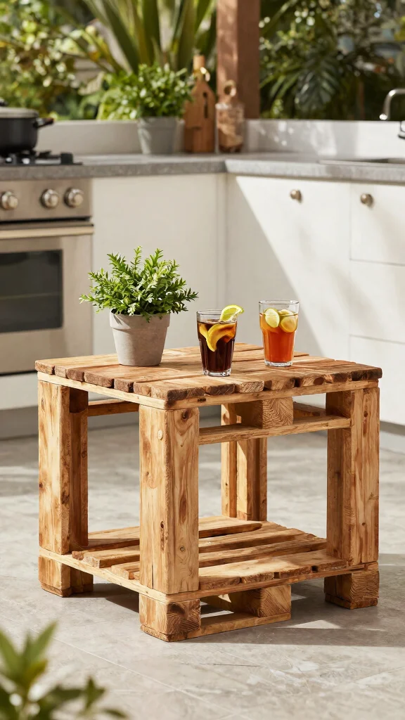Sometimes, the little details matter, like having a handy side table next to your outdoor kitchen. A simple pallet side table is perfect for holding drinks, plates, or even a charming potted plant. Building this table from pallets is easy and requires minimal materials, making it a practical addition.