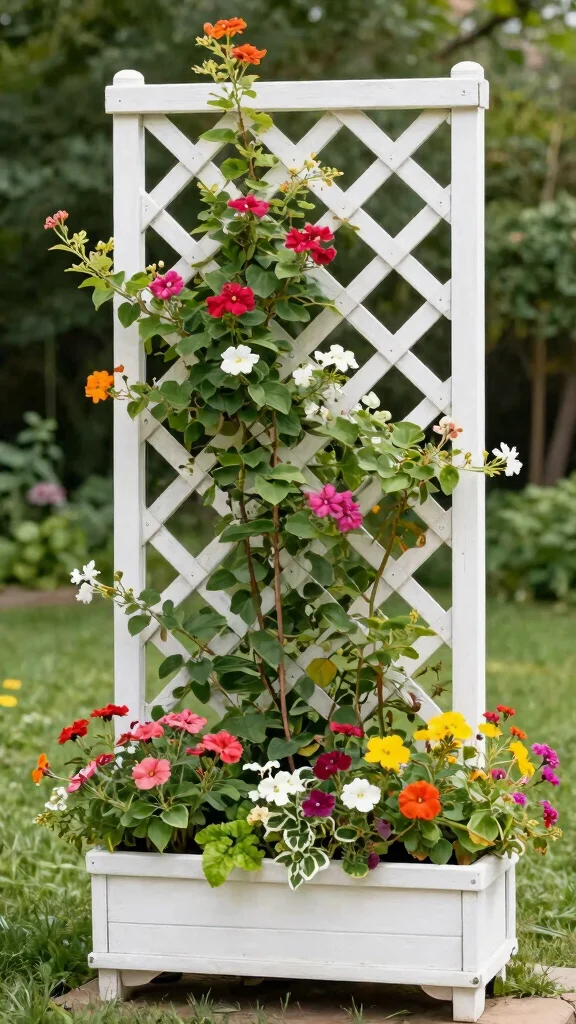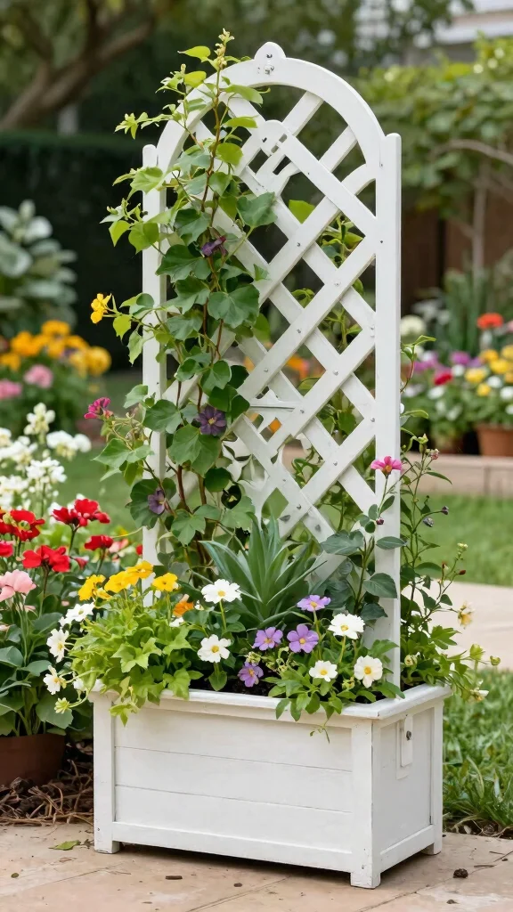 Build or purchase a decorative trellis and securely attach it to a sturdy planter box. Plant your climbing varieties at the base, making sure they receive adequate sunlight and water. This combination creates a striking focal point in your garden that is sure to impress.