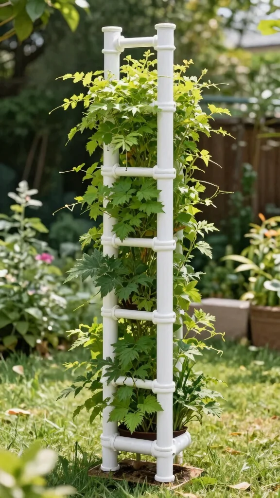 PVC pipes might not be the first material that comes to mind for gardening, but they can be surprisingly effective! A DIY vertical PVC planter with a trellis is a clever way to utilize vertical space while keeping costs low. This setup works wonderfully for lighter climbing plants like cucumbers or nasturtiums.