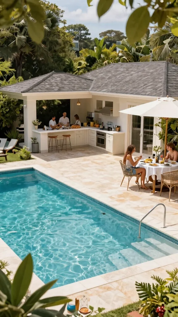 Prioritize comfort with ample seating, shade options, and easy flow between zones so the space works for entertaining and everyday use. pool and outdoor kitchen ideas that feel luxurious yet practical.