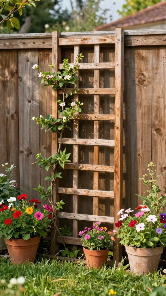 Maximize your limited space with a vertical garden wall trellis, blending privacy with style. This innovative setup allows you to grow plants upward, creating a stunning green wall effect that’s perfect for small gardens or balconies.