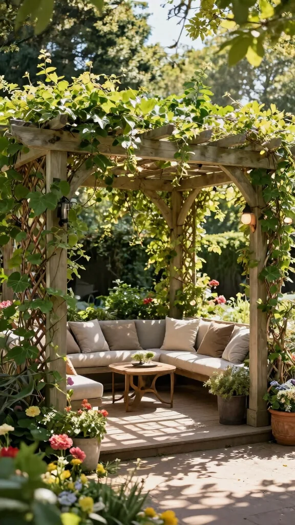 A pergola topped with trellis elements offers both shade and privacy. This stunning structure can dramatically enhance your outdoor area, making it perfect for entertaining or relaxation.