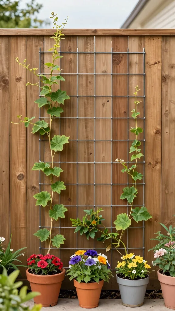 Consider a wire trellis for a minimalist yet effective privacy solution. This straightforward design can be customized to fit various outdoor spaces and pairs well with different plants.