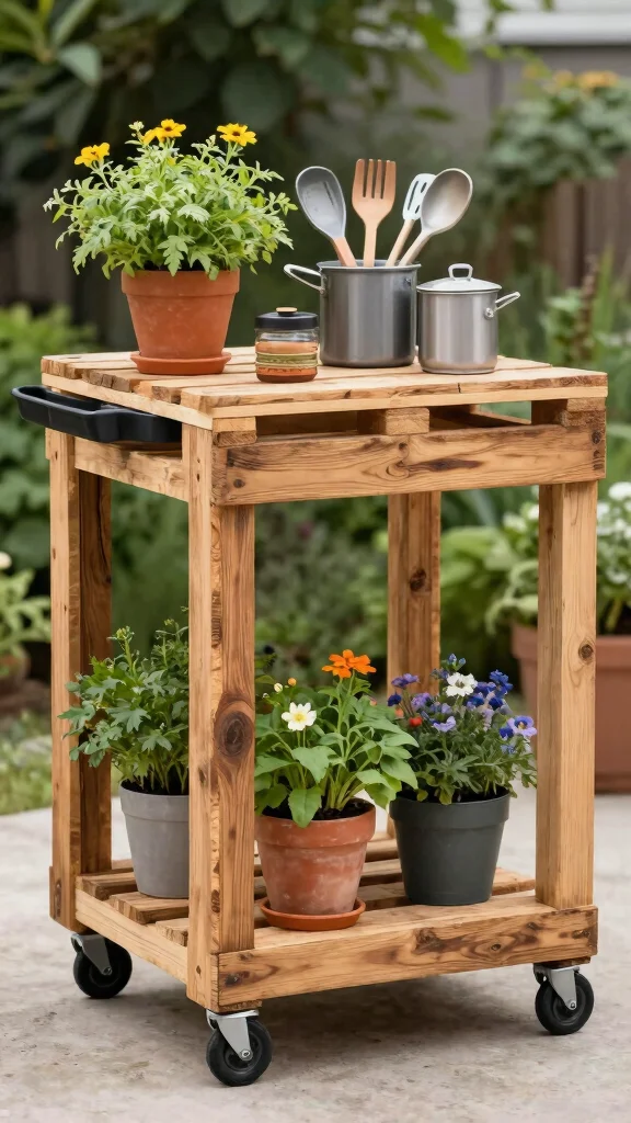 Looking for an affordable way to enhance your outdoor cooking space? A DIY kitchen cart made from reclaimed pallets is a fantastic solution! This rustic piece can hold all your cooking essentials and offers a small prep area, making it both functional and charming.