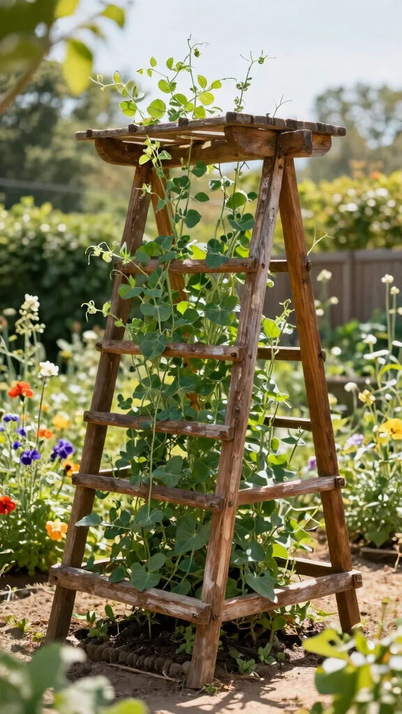 Ensure that the ladder structure is sturdy enough to withstand weather elements. Consider incorporating other climbing plants alongside your snap peas for a mixed garden effect. This unique design not only beautifies your garden but also creates a superb climbing space for your plants.
