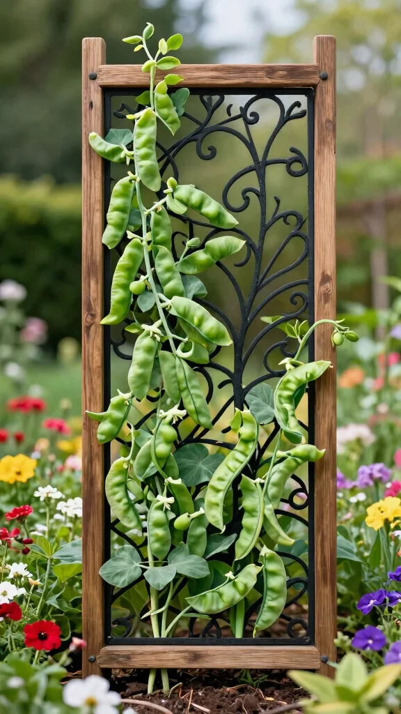This trellis not only supports your snap peas but also makes a bold statement in your garden, allowing for creative gardening solutions.