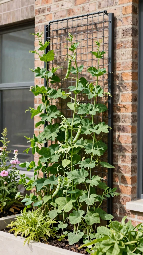 If you’d like something a little sturdier, a small bamboo teepee or a lightweight net-panel between two posts will still keep maintenance minimal while fitting a tight space.