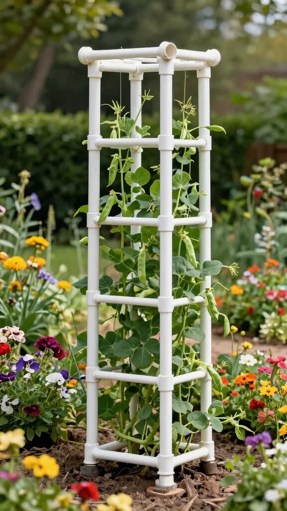 Fun fact: a PVC pipe trellis can be assembled in under 20 minutes and remains weather-resistant year after year, handing sturdy support to your snap pea trellis. Customize height and width to fit any space, and enjoy easy cleaning as your garden grows.
