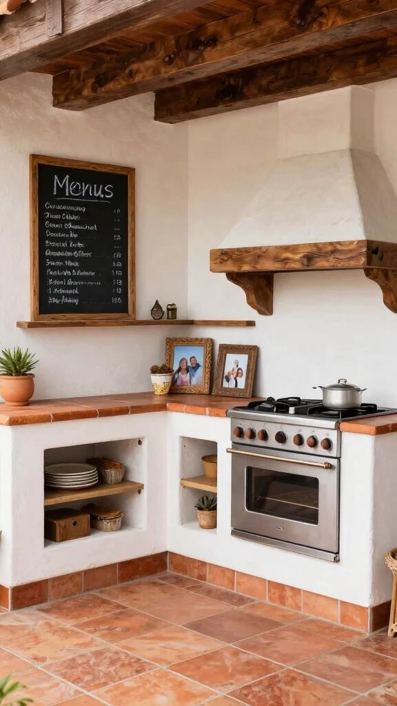 Practical tips: choose non-slip, weather-resistant terracotta tiles, seal them to protect against moisture, and balance with whitewashed surfaces and wrought-iron accents. Consider incorporating a herb garden in terracotta pots near the prep zone to keep fresh greens at hand.