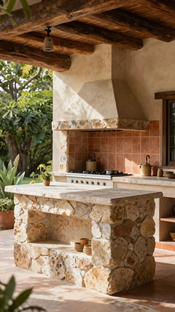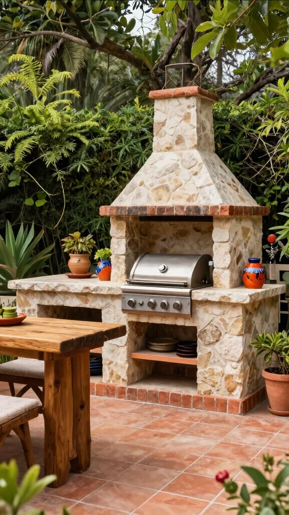 Integrating natural stone elements adds depth and character to your Spanish outdoor kitchen. Whether used for countertops, walls, or decorative accents, stones like granite and limestone create a rustic yet elegant atmosphere. These materials harmonize beautifully with terracotta tiles, enhancing the overall Mediterranean feel.