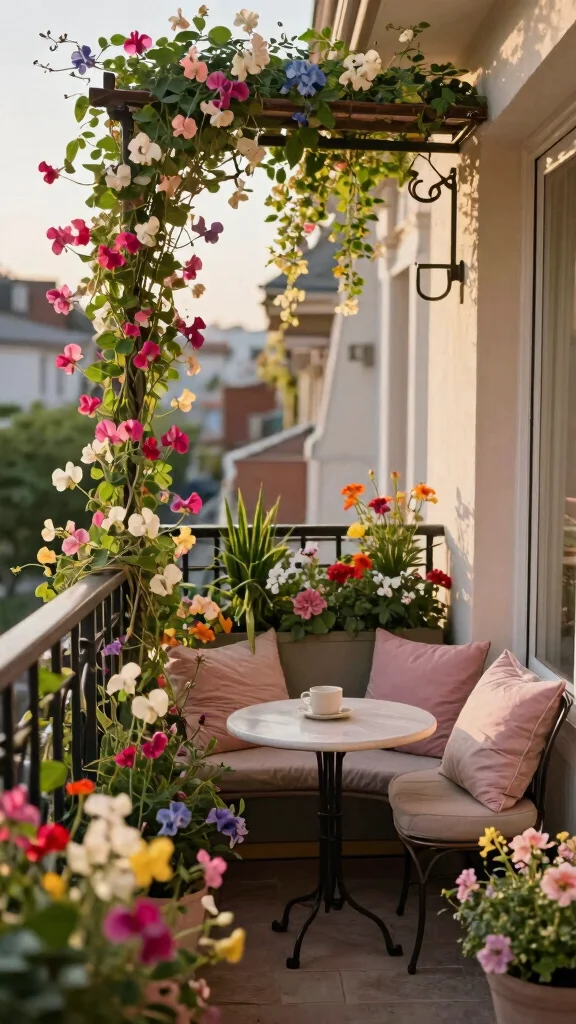 Living in a cozy apartment doesn’t mean you can’t enjoy a beautiful garden. A balcony hanging trellis is a fantastic solution, allowing you to cultivate sweet peas right outside your door. This vertical gardening approach creates a stunning floral display while maximizing your limited space.