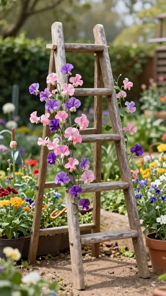 Transform an old ladder into a quirky trellis that supports your sweet peas while adding a unique flair to your garden. This creative reuse of materials not only provides functionality but also enhances the charm of your outdoor space. A repurposed ladder boasts character and a story all its own.