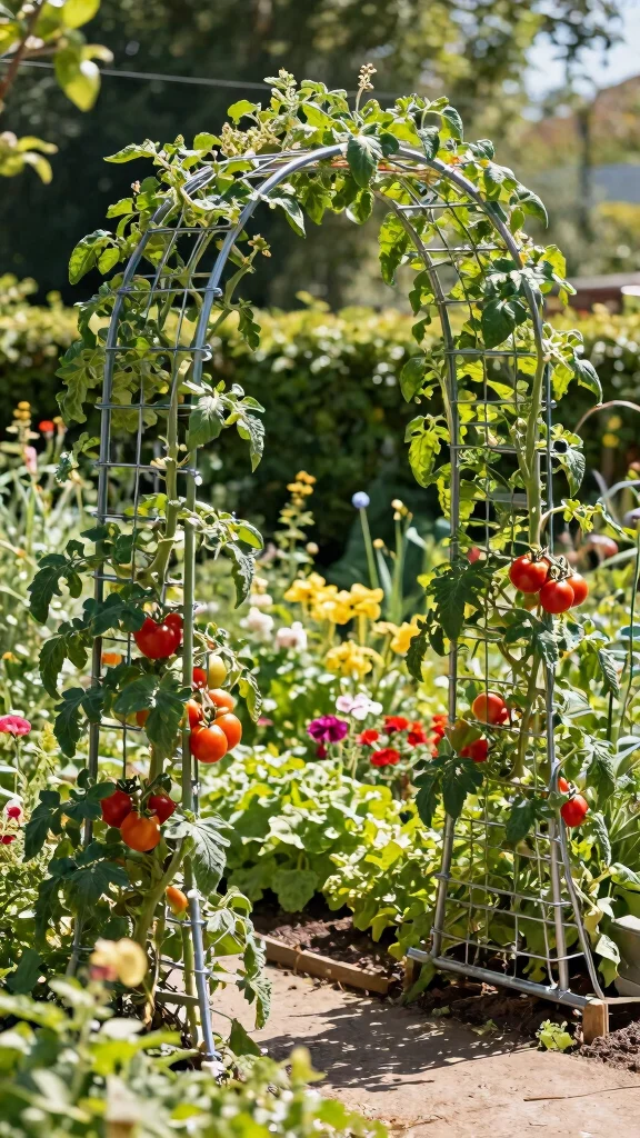 Looking to make the most of your limited garden space? A multi-tiered trellis system is an innovative way to cultivate tomatoes on various levels, creating a beautiful and fruitful arrangement in your garden. This approach not only saves ground space but also adds visual interest.
