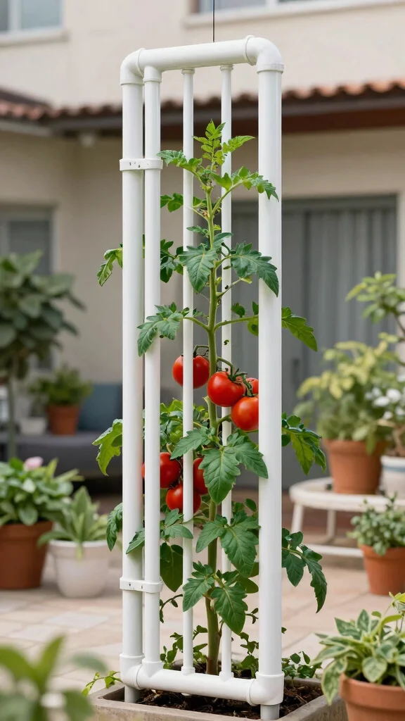 Want a fresh and modern take on tomato trellising? A vertical PVC pipe trellis is durable and lightweight, making it easy to assemble and disassemble as needed. This innovative approach allows you to maximize your planting space effectively.