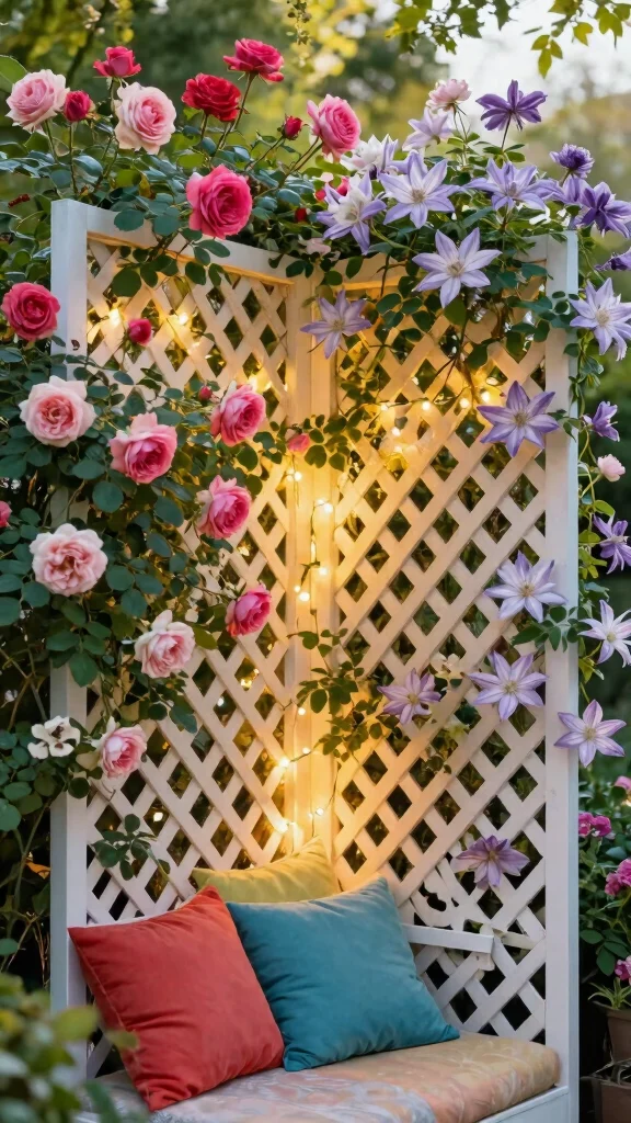 Start by choosing a lightweight option for hassle-free installation. Pair your lattice with vibrant plants like clematis and climbing roses for a stunning display. Consider stringing fairy lights along the panels for a cozy evening ambiance.