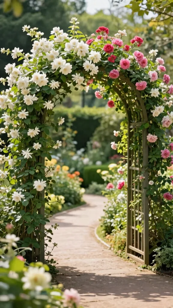Consider using flowering vines to create a stunning archway of blooms. Position it over pathways for a welcoming effect, and think about adding outdoor lighting to illuminate the arch at night.