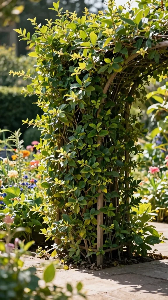 Using a trellis to support natural hedging plants is a brilliant way to combine classic hedge aesthetics with vertical growth. Fast-growing varieties like privet or laurel can be trained to grow against the trellis, creating a dense privacy screen while keeping your garden open and airy.