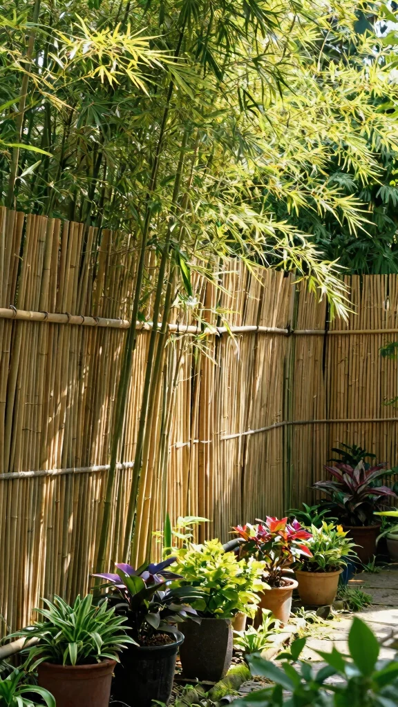 Consider using screens of varying heights for a dynamic visual effect. Pair them with potted plants for added greenery at the base, and rest assured that bamboo is durable against various weather conditions.