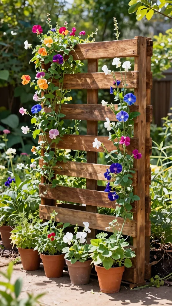 Select a sturdy pallet, secure it vertically, and plant fast-growing vines or flowers at its base for quick coverage. A splash of paint or stain can enhance its appearance to fit your garden style.