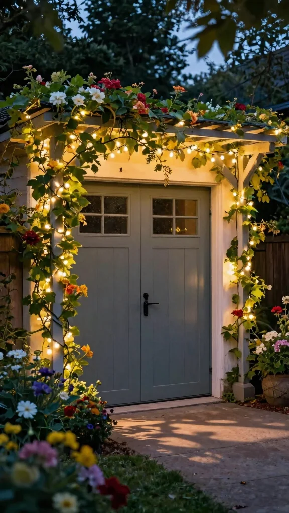 Consider soft white lights for an elegant touch or colorful options for a playful vibe. This feature adds charm to your garage door entrance, making it perfect for evening gatherings or seasonal celebrations. You’ll create a cozy ambiance that welcomes family and friends to your home.