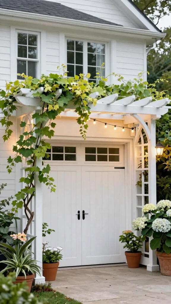 Opt for a trellis design with built-in planters to maximize space and enhance greenery above your garage door.