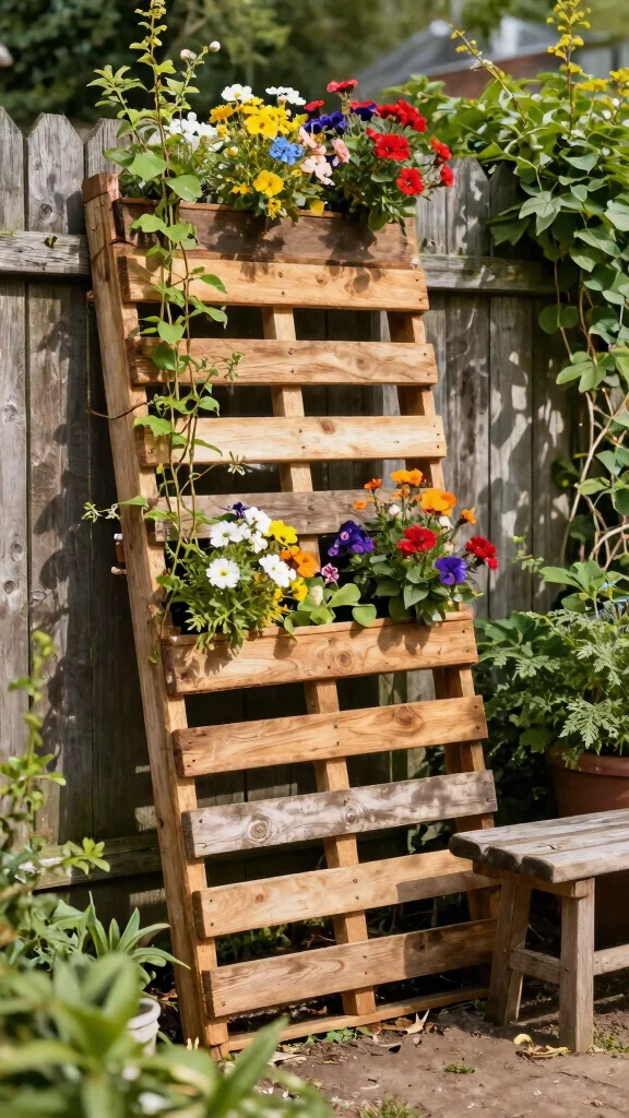 Revitalize old pallets by transforming them into charming trellises that add rustic flair to your garden. The rich wood grain brings a cozy, warm atmosphere, perfect for showcasing your climbing plants. Plus, pallets are often available for little to no cost, making this a budget-friendly DIY project that’s easy to tackle.