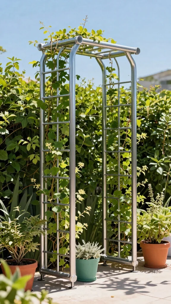 Transform your outdoor space with a striking trellis made from metal piping. This unique choice adds an industrial edge that beautifully contrasts with lush greenery. Using galvanized pipes, you can create a sturdy, eye-catching structure that stands the test of time.