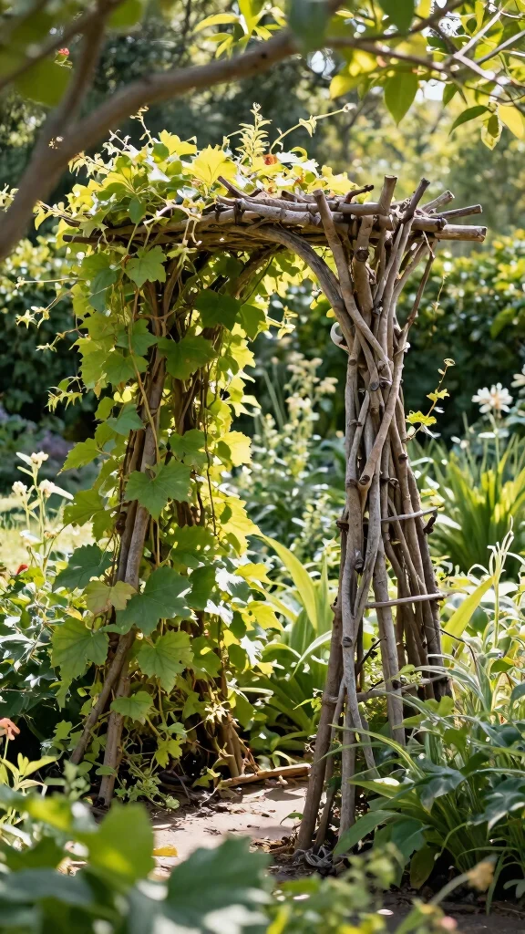 Utilize fallen branches or twigs to craft a natural-looking trellis that harmonizes beautifully with your garden. This option highlights the natural beauty of wood while providing a unique support system for your climbing plants.